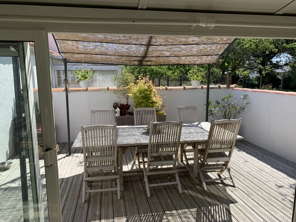 A Bârbatre sur l'Ile de Noirmoutier, dans quartier recherché, calme à 1,5km des commerces, une très belle maison Noirmoutrine d'une superficie de plus de 88m2. Au fond d'une impasse, sur un beau terrain de 500m2, cette belle maison rénover avec gout vous offre : Une véranda lumineuse donnant sur la première terrasse, une cuisine aménagée et équipée, un salon avec insert, une grande chambre donnant sur la deuxième terrasse ; une très jolie salle d'eau ; un WC séparé ; une buanderie et un petit bureau (possibilité troisième chambres).